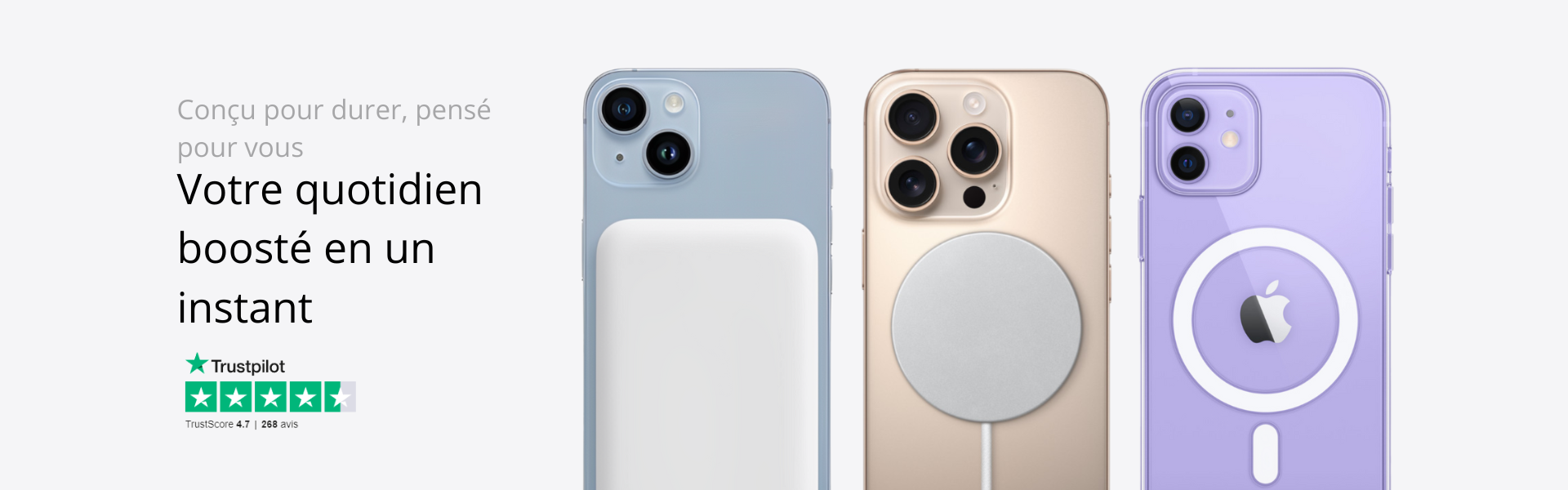 Simplifiez votre quotidien avec nos accessoires magnétiques : coque, chargeur et batterie externe conçus pour une utilisation rapide, pratique et sans fil.